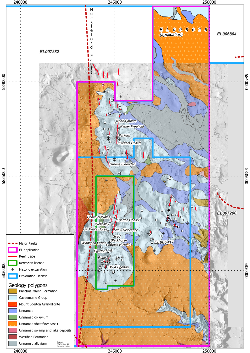 • One Exploration Licence Application (EL8628) which surrounds the granted Exploration Licence – also hosting numerous gold occurrences, including the historical Gorden goldfield