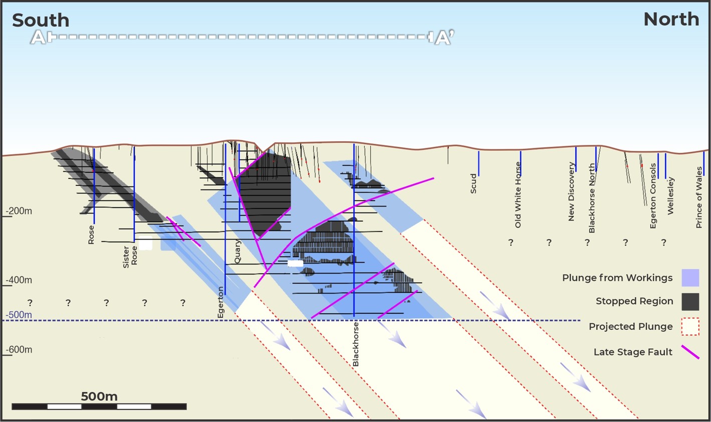 • Areas to the north, east, and south of the main Egerton mine corridor exhibit significant exploration potential, as identified through LiDAR imaging and historical records.